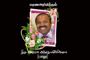மரண அறிவித்தல் October 30, 2014 Uncategorized திரு எட்வேட் அந்தோனிப்பிள்ளை (பாலு) இறப்பு : 28 ஒக்ரோபர் 2014 யாழ். நாவாந்துறை...
